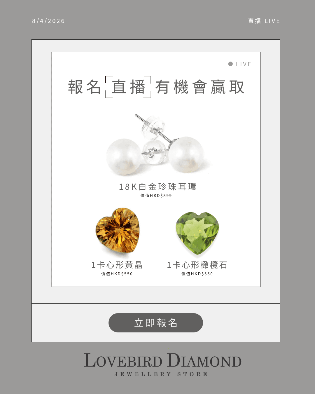 【Lovebird Diamond】4月8日(週三)9:00-11:30pm Facebook Live 直播優惠登記 💎